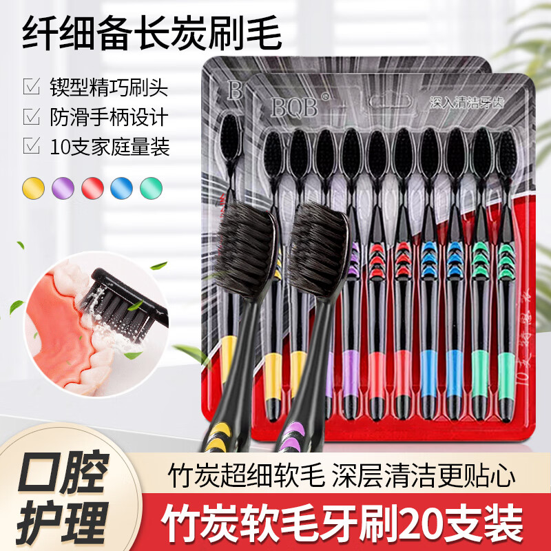 BQB竹炭软毛牙刷成人儿童口腔清洁护理细毛牙刷家庭套装男女通用 竹炭软毛牙刷‘x 20支