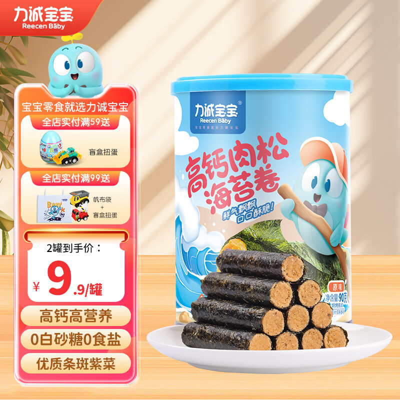 力诚宝宝高钙肉松卷海苔卷儿童零食夹心海苔脆即食办公室健康休闲零食 【海苔肉松卷】原味90g*1罐